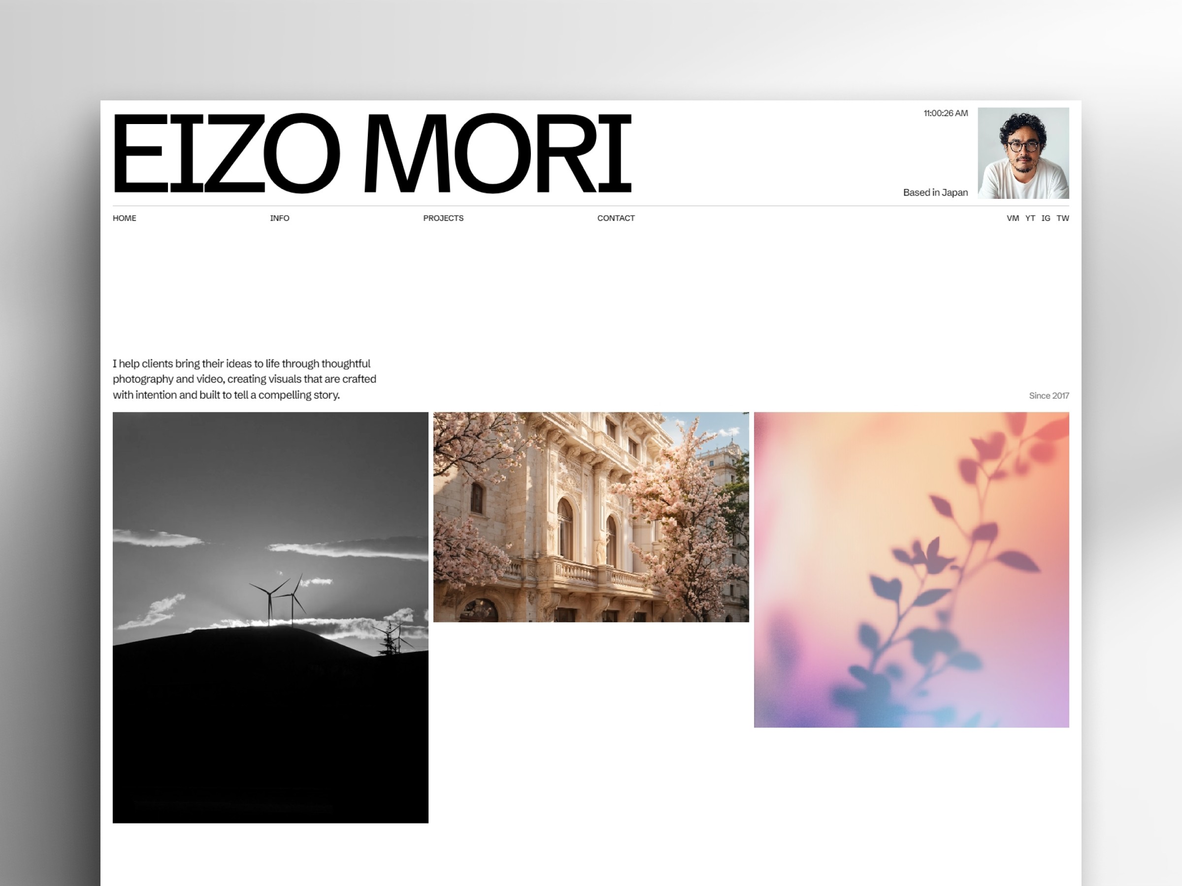 Eizo is a minimal portfolio Framer template for filmmakers, photographers, and creatives.